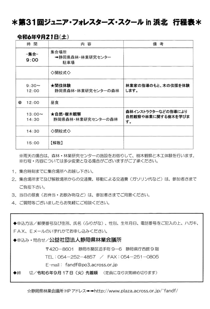 「第31回ジュニア・フォレスターズ・スクールin浜北」のお知らせ